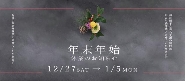 ※休業期間中にお送りいただきましたお問い合わせ(HPからのご予約)につきましては、1月6日(土)より順次ご対応させていただきます。