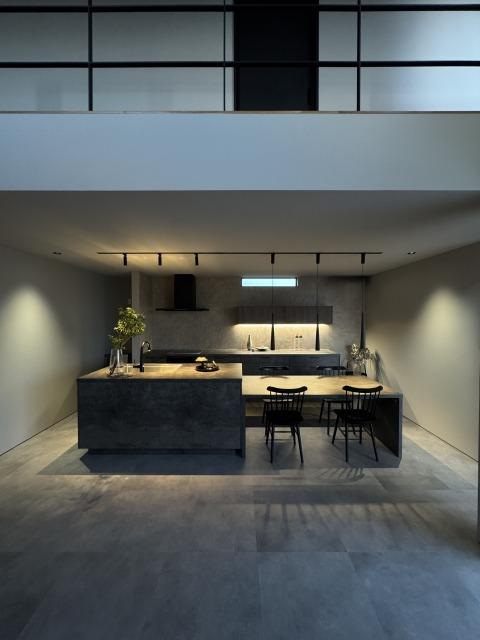 グラフテクトの重厚なキッチンが洗練された印象を添えます。