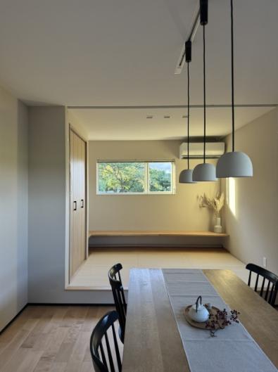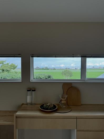 #23 田園風景に佇む平屋 穏やかな田園地帯 自然豊かな景色 ダイニングには朝日が差し込み 春には小上がりの和室から桜がのぞめ 季節の移ろいを感じる日常。 空間のつながり 家族とのつながりを重視した平屋です。